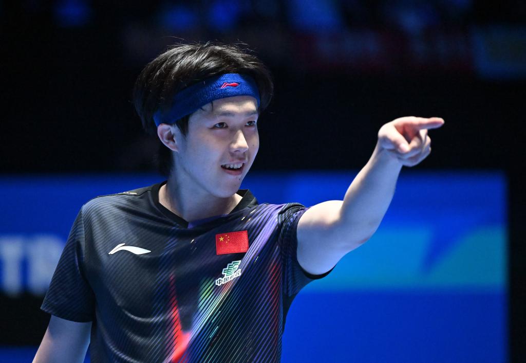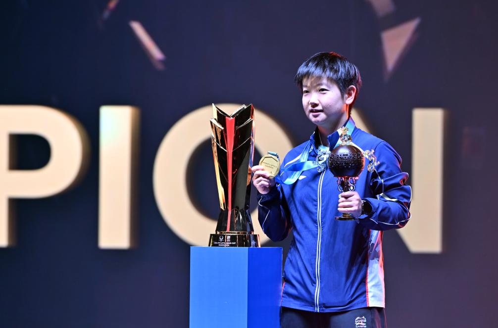 “很感謝為我加油的隊友們,最終拿到冠軍非常開心。”奪冠瞬間,王楚欽手指教練和隊友們,共同慶祝。“前面幾局張本(智和)發揮得更好,給自己帶來很大的困難,但自己沒有受到比分落后的影響,逐漸找到比賽感覺,發揮出更好的水平,用自己的得分手段贏下比賽。”