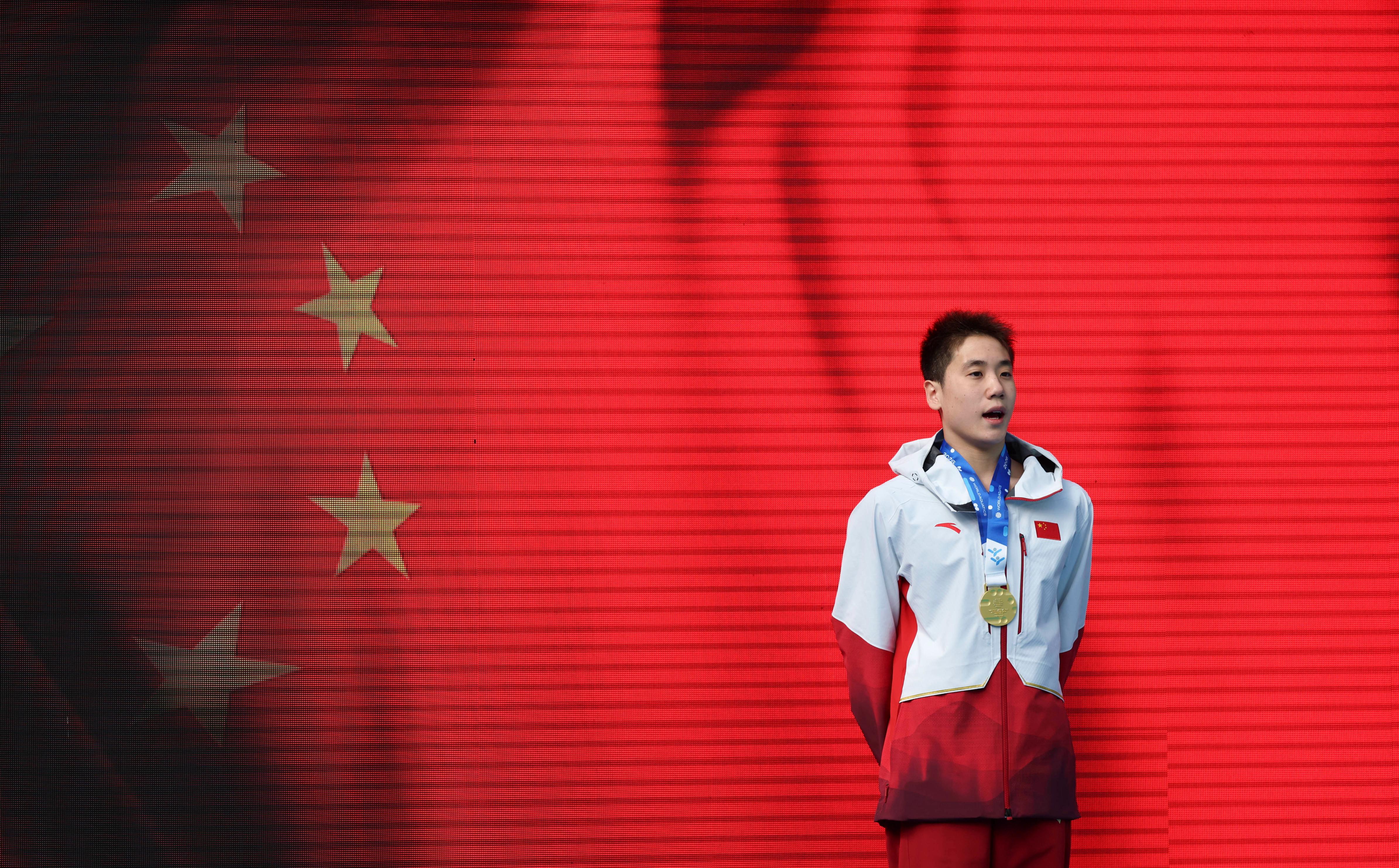 郭牧也在男子單人自由自選頒獎儀式上。圖片來源:新華社