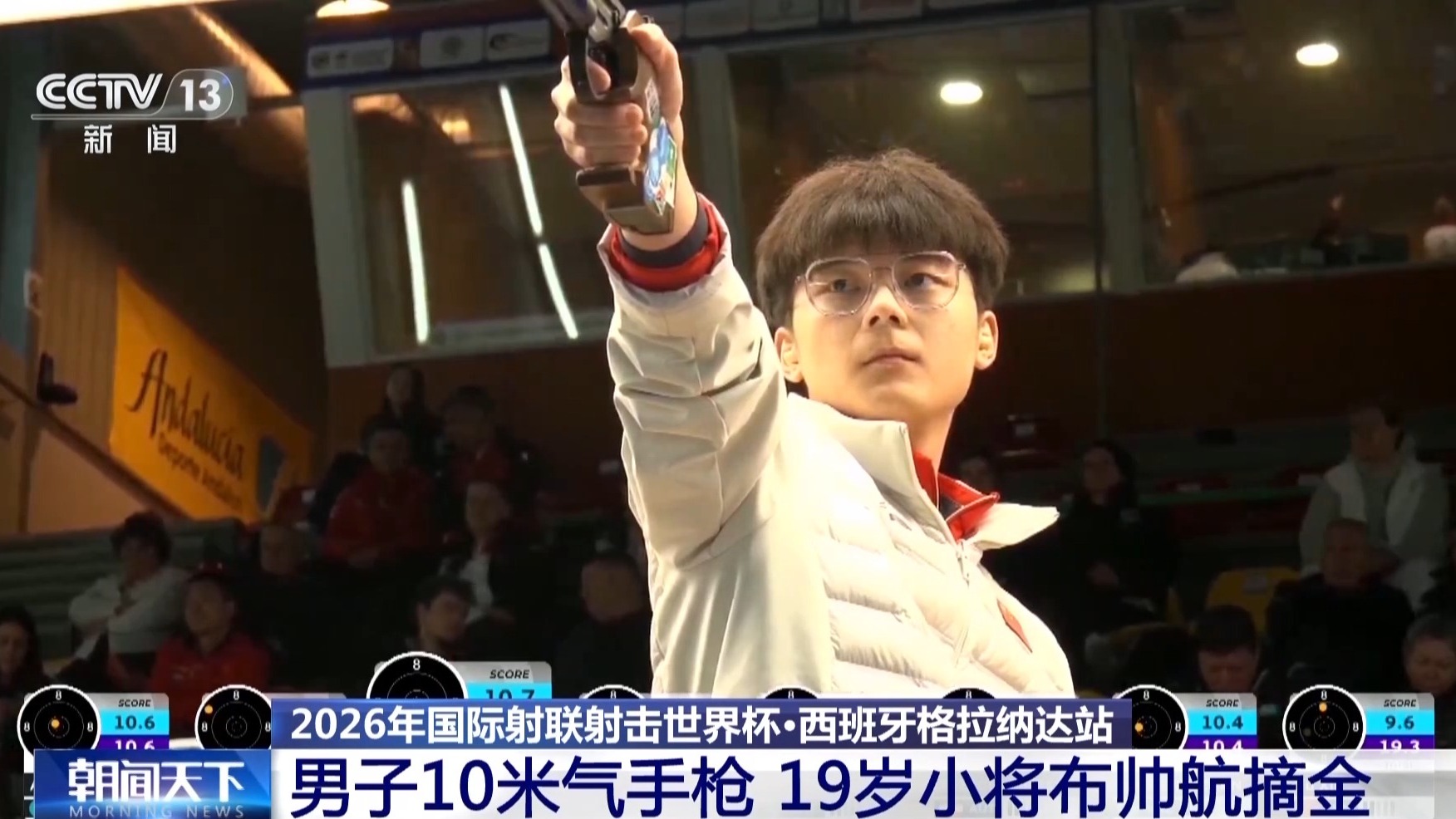 昨晚(4月8日),2026年國際射聯射擊世界杯西班牙格拉納達站中,中國19歲小將布帥航以244.5環奪得男子10米氣手槍金牌。
